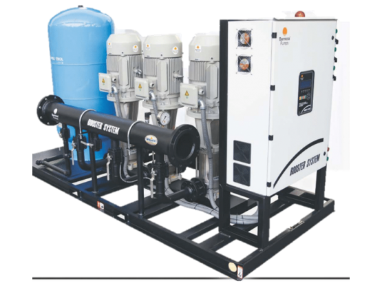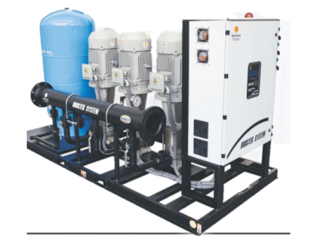 EQUIPO INTEGRADO BOOSTER SYSTEM (PRESIÓN CONSTANTE velocidad variable)| Serie EBS con bomba vertical, Barmesa Pumps, Modelo del equipo: EBS-04X3-04DV130HV-2P, con # de Bombas: 4, # de variadores: 4, Modelo de bomba: HMV22-90-403, Código -, 4 HP, 460 V, 3 F, 3500 RPM, Presión (PSI) 130, Flujo (GPM) 88 entre la totalidad de las bombas.Los equipos conbomba vertical se componen de:- Tablero de control principal, diseñado y fabricado en planta, que incluye campana de alarma y torreta.- Cabezal de succión y descarga bidireccional, bridado, fabricado en acero al carbón ASTM A-53 cédula 40.- Conexiones hidráulicas roscadas en diámetros de Ø1¼" en succión y descarga, con válvula de esfera, check tipo columpio y yee de cebado (ANSI 150).- Conexiones hidráulicas bridadas en diámetros de Ø2" en adelante para succión y descarga, con válvulas mariposa tipo palanca y válvula check entre bridas tipo wafer.- Línea de prueba con válvula de esfera ANSI 150, ANSI 300 o ambas, según la presión de operación.- Transductor de presión de 0–10 bar (0–142 PSI) o de 0–300 PSI, según la presión de operación.- Manómetro BARMESA con baño de glicerina, carátula de Ø2½" (para cabezales de Ø3" y Ø4") y carátula de Ø4" (para cabezales de Ø6" en adelante).- No incluido en el precio de lista:Tanque precargado opcional (recomendado para una operación más suave y estable).Solicitar agregar a la cotización- Estructura base de lámina rolada en frío calibre 10 (ASTM A-1012), con entrada para montacargas.- Certificado de pruebas hidráulicas realizadas en el laboratorio BARMESA, con parámetros de calibración. Las pruebas incluyen 3 horas continuas de operación y 12horas de pruebas de hermeticidad.- Certificado de calidad BARMESA con número de serie.- Manual de operación del equipo.