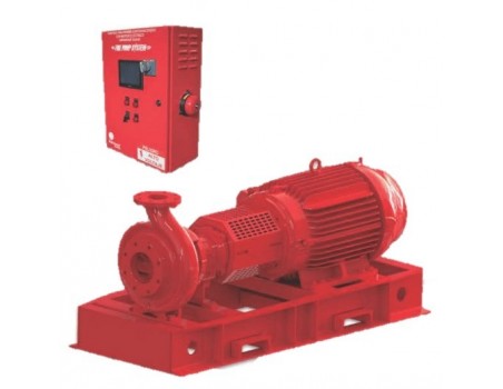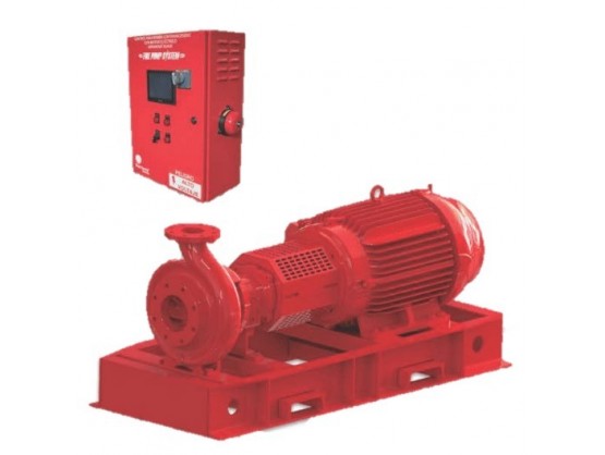 Bomba centrífuga acoplada a motor eléctrico con certificación UL (cople flexible), marca BARNES, modelo EA80/26-75-2, código 60361562, tamaño 4"x3", 75 HP, con arranque SUAVE, 3500 RPM, 500 GPM, con 130 PSI. Para 230 Volts 3 fases.